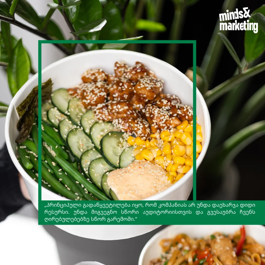 „პრინციპული გადაწყვეტილება იყო, რომ კომპანიას არ უნდა დაეხარჯა დიდი რესურსი. უნდა მიგვეგნო სწორი აუდიტორიისთვის და გვესაუბრა ჩვენს ღირებულებებზე სწორ გარემოში.“