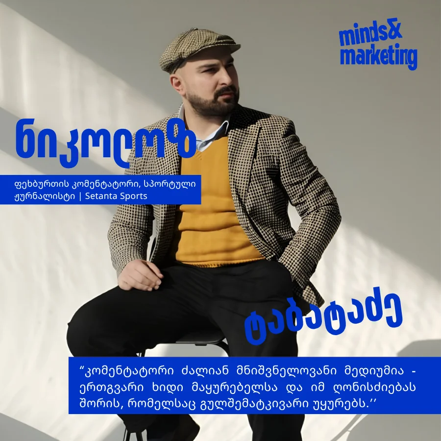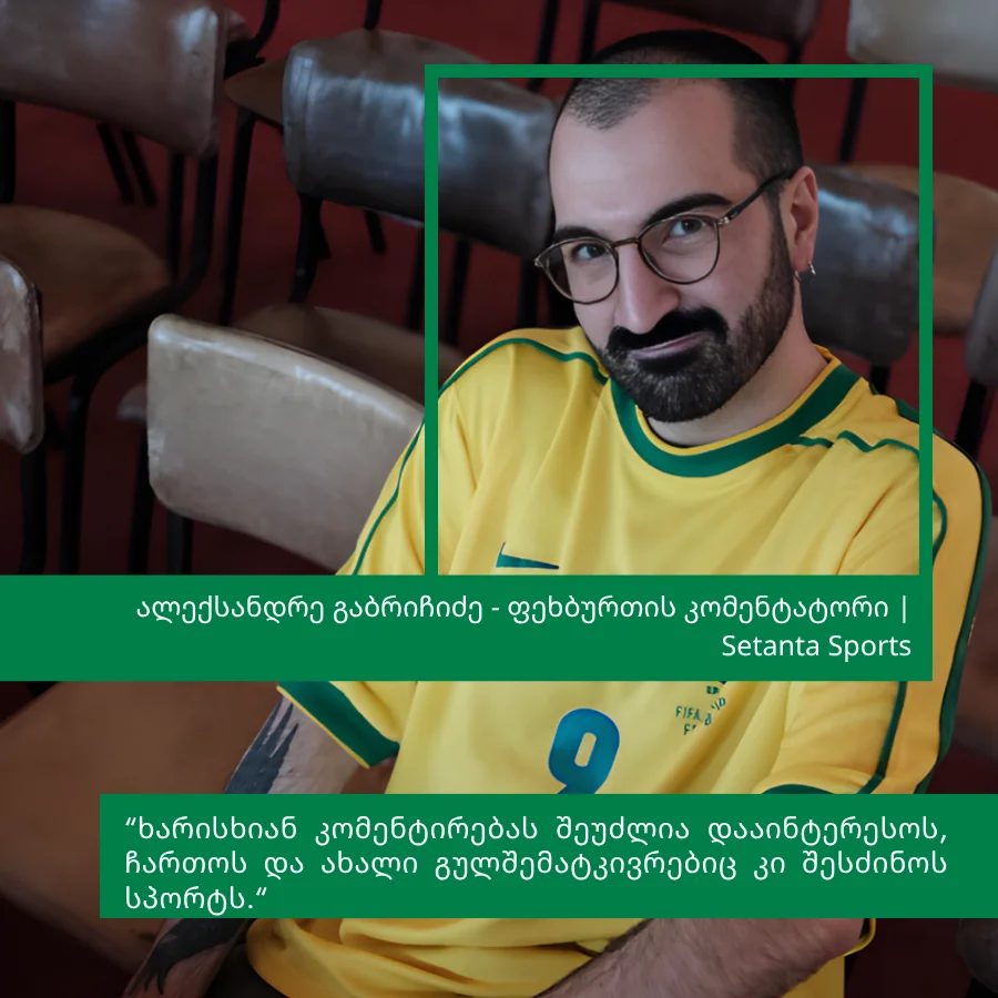 რაც შეეხება ვიდეო კონტენტს, ეს ნაწილობრივ თავად ინდუსტრიის, მათ შორის სეტანტა სპორტის სტრატეგიის შედეგიცაა. მნიშვნელოვანია, რომ კომენტატორი იყოს არა მხოლოდ ხმა, არამედ ვიზუალურადაც ცნობადი ფიგურა - ადამიანი, რომელსაც გულშემატკივარი ხედავს სხვადასხვა გარემოში: სტადიონზე, ეთერამდე ჩართვებში და სხვა ფორმატებში.’’